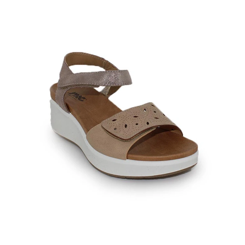 Les sandales femme 158100 de la marque ENVAL, rebaptisée IMAC vous chausseront avec confort et style ! Idéales à porter en toute circonstance, elles disposent de deux brides Velcro sur le dessus. C’est un système de fermeture parfaitement adapté pour ajuster le modèle à chaque pied.