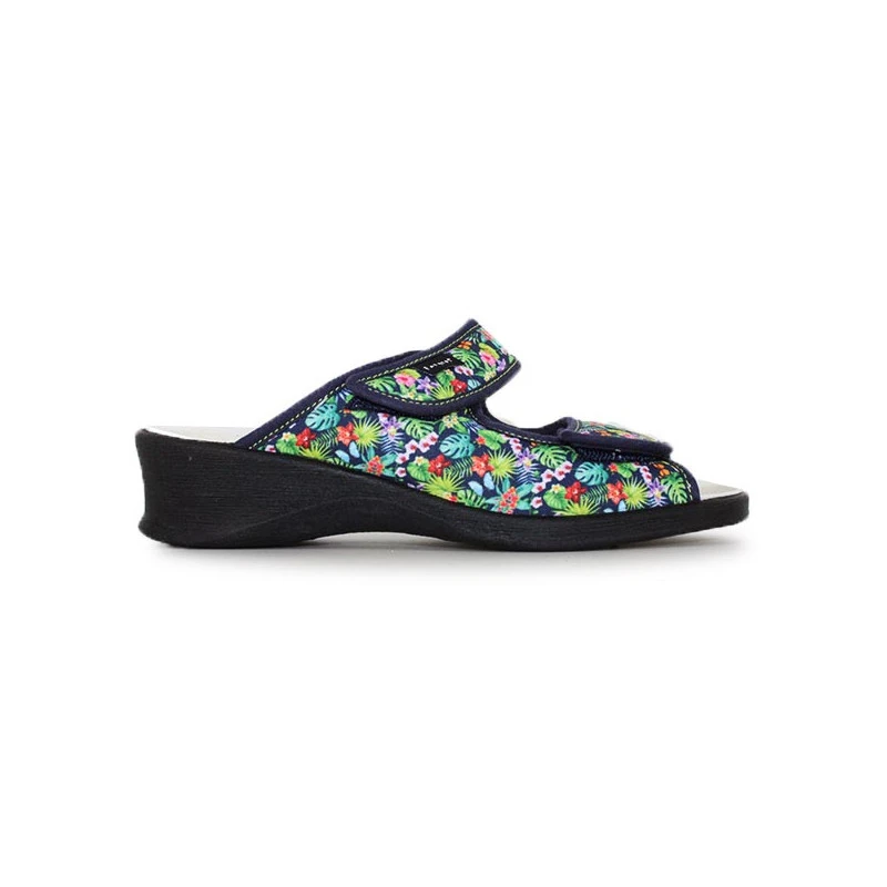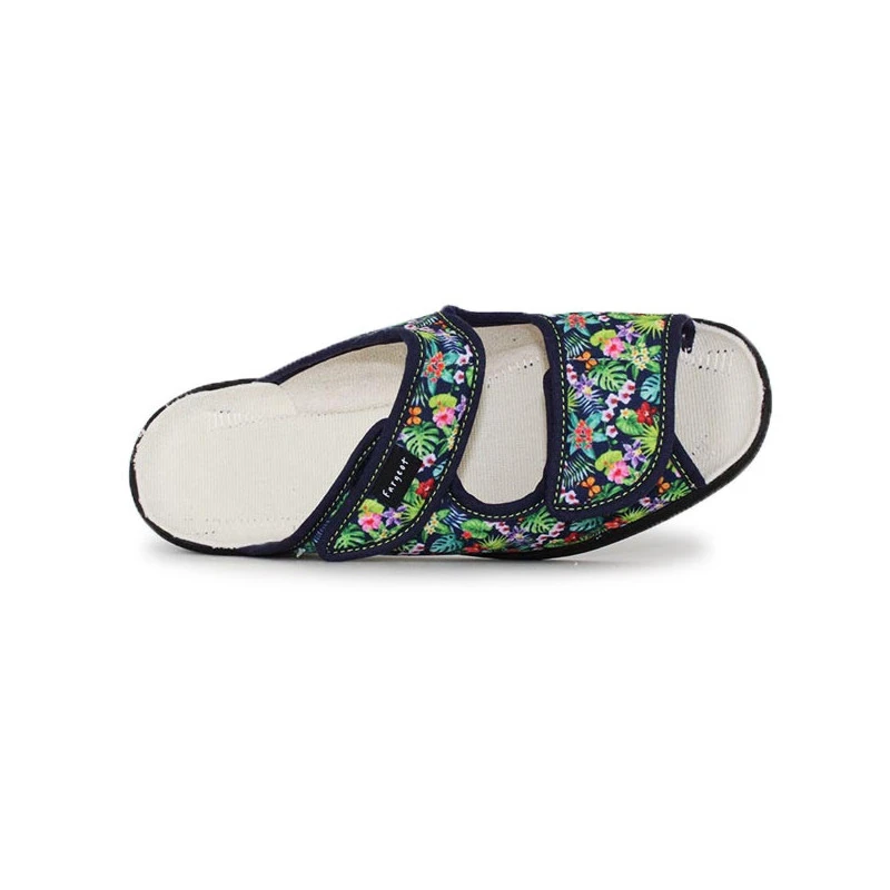 On adore le style fleuri et estival des chaussons mules Velcro XANADOU de la marque FARGEOT. Ajustables à chaque pied grâce à leurs deux brides Velcro sur le dessus, ils vous assurent confort et maintien au quotidien !