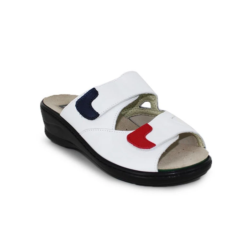Les personnes souffrant d’hallux valgus apprécieront les mules Velcro DORIANE de la marque FARGEOT. Conçues en cuir lisse, ces mules femme chausseront parfaitement vos pieds déformés grâce à leur partie en matière stretch de grande qualité. Parfaitement ajustables à l’avant par leurs deux brides Velcro, elles les maintiendront également très bien.